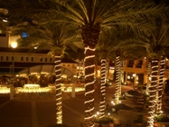 schön aus. Zahlreiche Lichterketten schmücken die Palmen, die