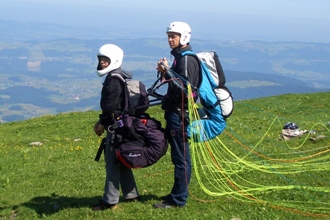 (beim Tandem auch der Passagier ;-) in das bequeme Gurtzeug und steuert